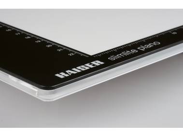 cm and inch scale beside the illuminated area of acrylic-glass.