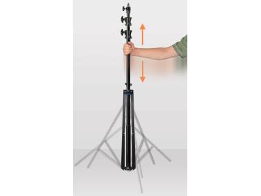 Black anodized telescope center column with air cushion. Center column and legs made of aluminum.