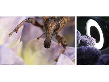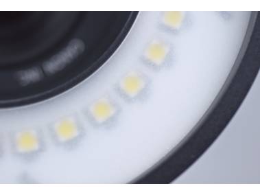 Professional ring light with 30 three-chip high performance LEDs (CRI=94). Illuminance at 30 cm (11.8 in.) approx 2100 lux.