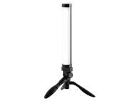 Compact multifunctional LED color effect light in tubular form. Provides white light and colored light as well as 17 special lighting effects, that can be customized individually. With integrated Lithium-ion battery for mobile, mains-independent use and with built-in magnets for attaching the light to magnetic sufaces. Multiple mounting and handling possibilities. Comes with USB cable, hand strap, metal plates for attaching the light to non-magnetic surfaces and protective bag.