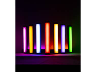 In color mode it is possible to add color effects to portraits, product shots and scenes or create a particular lighting atmosphere, for example by a background illuminated with colored light. You can generate 360 different colors of the visible spectrum by mixing the light from LEDs with the primary colors red, green and blue (RGB). In addition color saturation can be adjusted between 0 % and 100 %, thus 36.000 shades of color can be represented.