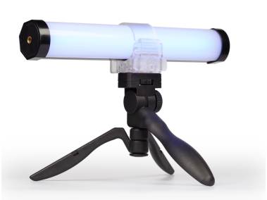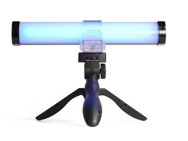 The light tube has 1/4” threads on both ends and can thus be mounted on stands or fixtures with a suitable connection thread. When used as a hand lamp the enclosed hand strap can be attached to one of these threads.