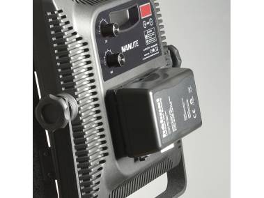 Operation via the included mains adapter. Mains adapter support for attachment on V-mount fixture is also included.