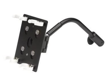 With curved support arm, sturdy ball joint and removable light support plate.