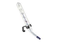 With angled stem and hook for hanging it on tray’s edge. Alcohol-filled bulb. Centigrade and Fahrenheit scales: 0 ... 50° C/32 ... 120° F. With marking at 18°C/64°F. Length: 85 mm + 40 mm of angled stem (3.3 + 1.6 in.), ø 10 mm (.4 in.)![]()