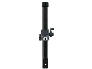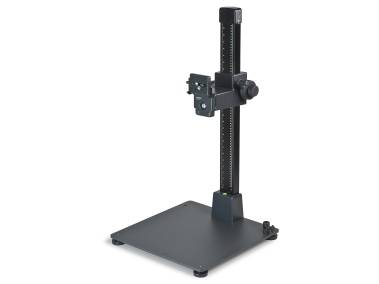 Wide and extremely vibration-resistant column of aluminium tubing with dull black anodized surface and cm and inch scales. With mount and fastening mechanism for camera arms and for lower part enlarger head 4568. Height adjustment by hand crank.
