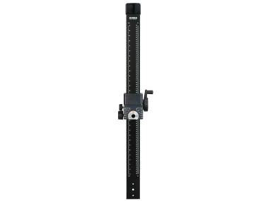 Wide and extremely vibration-resistant column of aluminium tubing with dull black anodized surface and cm and inch scales. With mount and fastening mechanism for camera arms and for lower part enlarger head 4568. Height adjustment by hand crank.