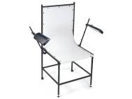 Vertical arms with height markings, tiltable with detents. Mounted with strong articulated joint bases.