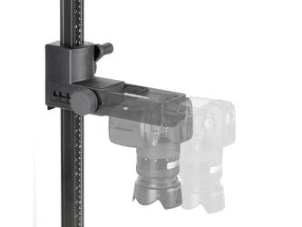 Non-reflective matt grey baseboard with printed fine grid and cm/inch scale. Matt-black anodised aluminum section tube column with cm/inch scale. Hand-cranked height adjustment by friction drive in plastic bearings. Column can be mounted rotated 180°. With horizontally adjustable camera arm to change the distance to the column, moves approx. 7 cm (2.7 in.) back and forth. 1/4” mounting thread.
