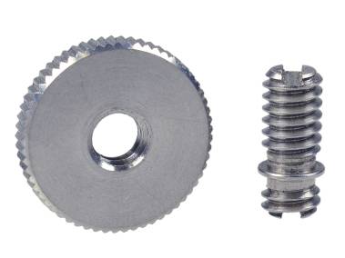 One threaded pin with end stop for secure fastening and one threaded pin with handy lock nut for exact alignment.