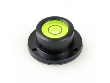 Circular bubble, self-adhesive. For permanent attachment to cameras, tripods etc. Features three holes for screw attachment. Aluminum housing, black anodized.