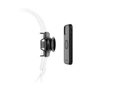 The VACUUM tex base consists of the VACUUM turn base and the VACUUM tex plate. The tex plate is placed on the desired position on the strap and fixed with the silicone fastening band. The VACUUM turn base is inserted into the tex plate and rotated by 90°. The VACUUM tex base is compatible with all VACUUM phone cases, as well as uni phone patch and uni phone cases. The smartphone is 360° rotatable, while a ratchet prevents it from rotating during use!