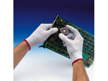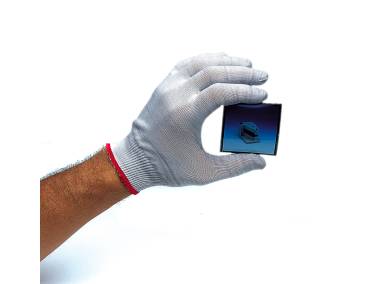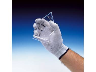 The lint-free gloves are suitable for handling films, optics, semiconductors, printed circuit boards, plastic objects, photos and also glass or plastic. Dirty gloves can be washed in a mild soap solution and dried in the tumbler-drier.