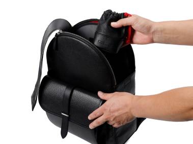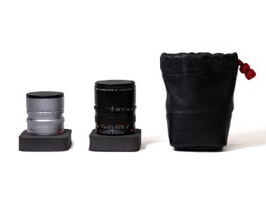 Furthermore, inside the pouch, a removable ‘donut-shaped’ cushion base is placed with a cut-out, fitting for the Leica M rear lens cap. By removing this cushion base, the pouches can of course also store lenses from other manufacturers.