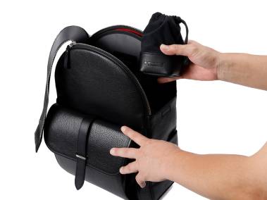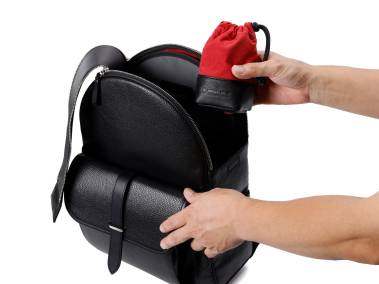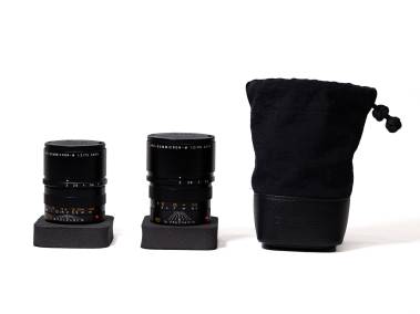 Furthermore, inside the pouch, a removable ‘donut-shaped’ cushion base is placed with a cut-out, fitting for the Leica M rear lens cap. By removing this cushion base, the pouches can of course also store lenses from other manufacturers.
