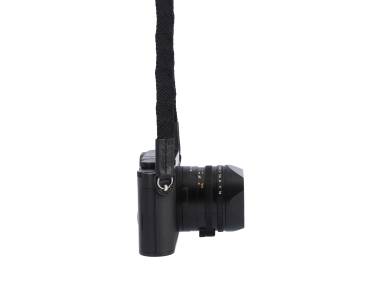 The leather and hand stitching used to secure the strap to the camera (root leather) are a simple all-black color to accentuate the unique strap design.