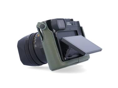 Flip-open bottom with magnetic closure for quick access to the battery (Q, Q2, Q3) and SD card (Q only). Additional opening for the tripod thread, cutout on the back also suitable for foldable displays (Q3).