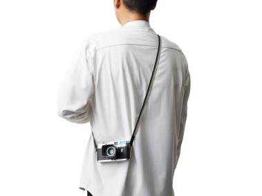 This camera strap, crafted from silk cord, is beloved as a stylish accessory for traditional Japanese attire.