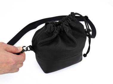 High-quality, lightweight camera bag made from supple yet dimensionally stable goatskin leather with a natural grain. Suitable for both storing a camera body and carrying it, equipped with a removable shoulder strap. Particularly suitable for Leica M and Q models.