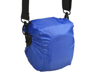 A blue rain cover is tucked away undetachably on the back of the bag. It can easily put over the bag from the bottom up as needed.