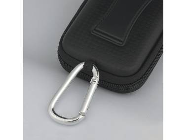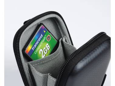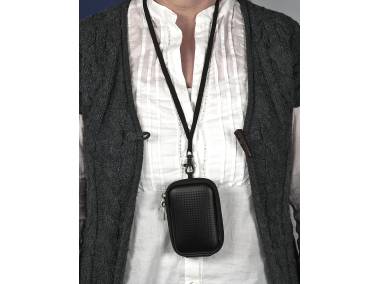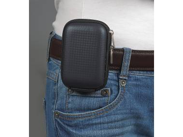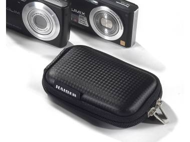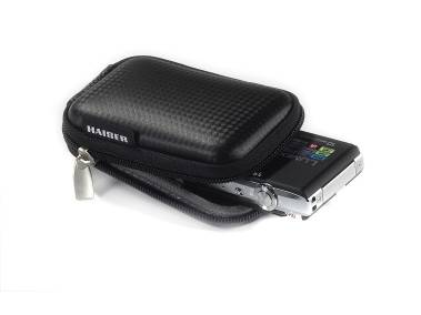 Compact camera bags with hard shell exterior and two-way zipper. Interior accessory pocket. With belt loop, detachable carrying strap and snap hook.
