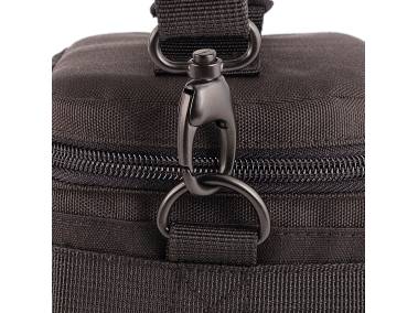 With carrying handle and detachable, adjustable and padded shoulder strap.